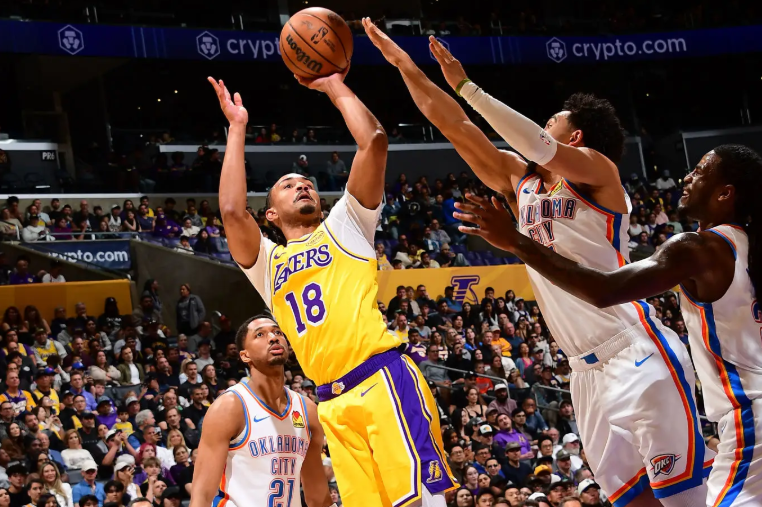 本场比赛中,湖人的替补后场球员科比-巴夫金(Kobe Bufkin)的表现倒是具备一定的亮点的。巴夫金全场出场18分19秒,投篮6中2,三分线外2中2,罚球4中3,得到了9分3篮板4助攻的数据,还有1次失误和1次犯规,正负值为0。值得一提的是,巴夫金也是湖人全队唯一一名正负值不是负数的球员。巴夫金在进攻端也是命中了两记三分,而且他还展现出了一定的传球能力和组织能力,他在进攻端也是起到了一定的作用的,这一点也是超出大家预期的。不仅如此,巴夫金在防守端的表现也算是中规中矩的水平,也是能够起到一定的效果的。总体来看,巴夫金在本场比赛中也算是发挥出了自己各方面的能力了,也算是湖人全队为数不多有所发挥的球员了。